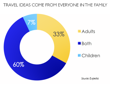 It’s important when creating content, be that on your website, social media or for email marketing campaigns, that you speak to the collective needs and wants of families; not just the adults, but the little ones too. They influence their elders when it comes to travel planning, as this chart from Expedia shows.