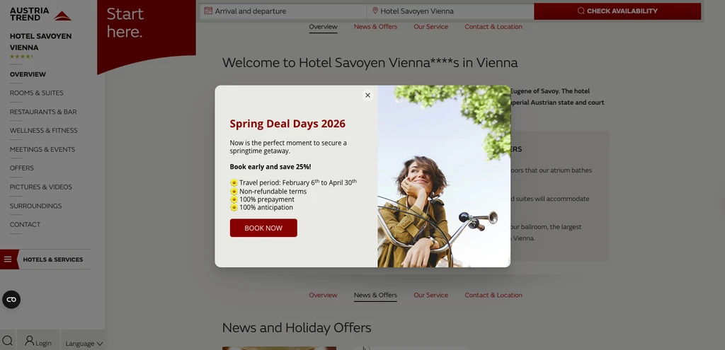 First impressions move fast. A traveler who lands on your homepage during peak spring shopping is making a split-second decision about whether to keep browsing or bounce. A bold, time-bound seasonal offer displayed prominently on arrival gives them a clear reason to stay.