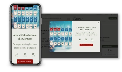 Christmas is a season filled with emotion and joy, and that feeling can come alive on a hotel’s website with the right approach. Adding an interactive element is a simple way to keep visitors engaged throughout the season. This advent calendar campaign builds anticipation day by day, with each window revealing a small surprise or giveaway that turns every visit into a moment of excitement. The warm design and countdown encourage users to return regularly, helping increase website traffic and visibility during one of the busiest travel periods of the year.
